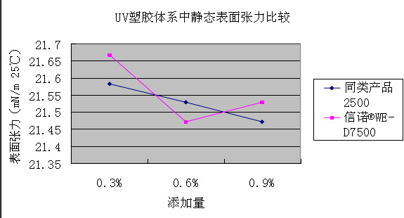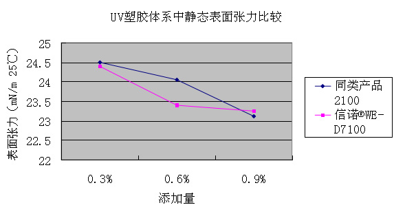 UV塑膠體系中靜態(tài)表面張力(mN/m 25 ℃):
